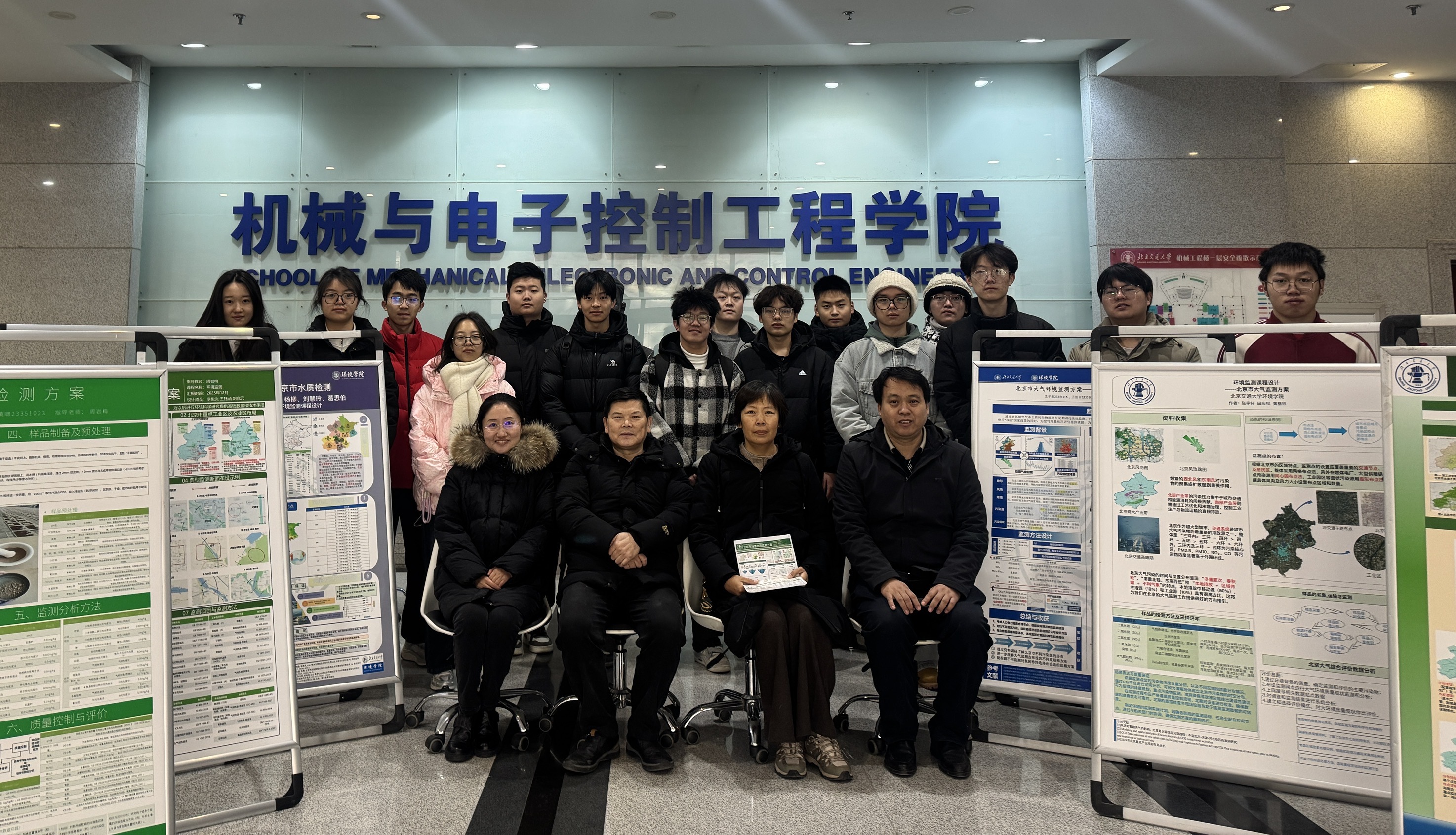 为深化课程实践教学成果,夯实学生专业知识应用能力,2025年12月31日,九一直播 2301班《环境监测》Poster答辩展示活动在机械楼一层大厅顺利举办。院长彭林、副院长王爱民及专任教师陈蕊、田秀君受邀出席,与班级全体学生共同参与这场兼具专业性与创新性的实践成果展示活动。